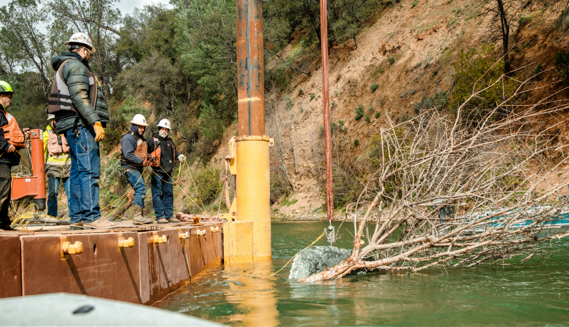 To address lack of natural rearing habitat in the upper reaches of the Sacramento River, 25 natural ‘rockwad’ structures - which are made of almond tree canopies and large boulders - will be installed from April 27 to May 3, 2026.